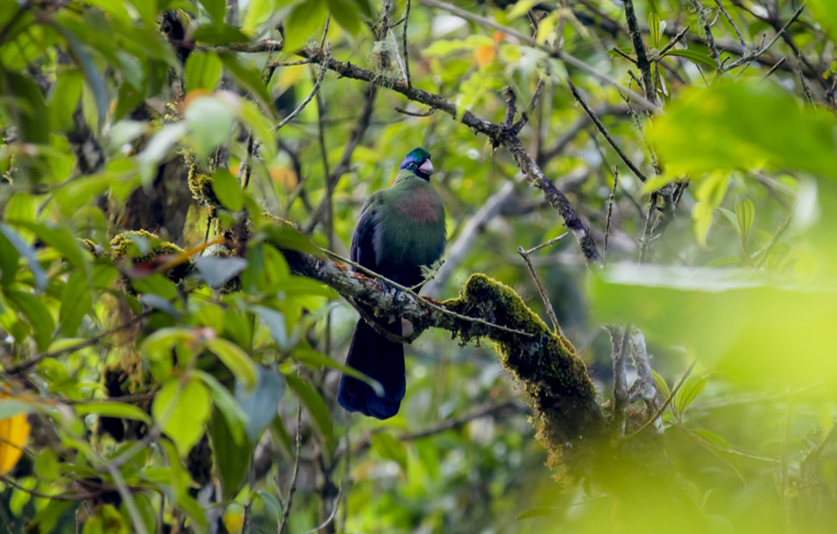Turacos such as this Ruwenzori Turaco are rare elsewhere but abundant in Nyungwe. You are likely to hear their loud repetitive call resonate in the forest.